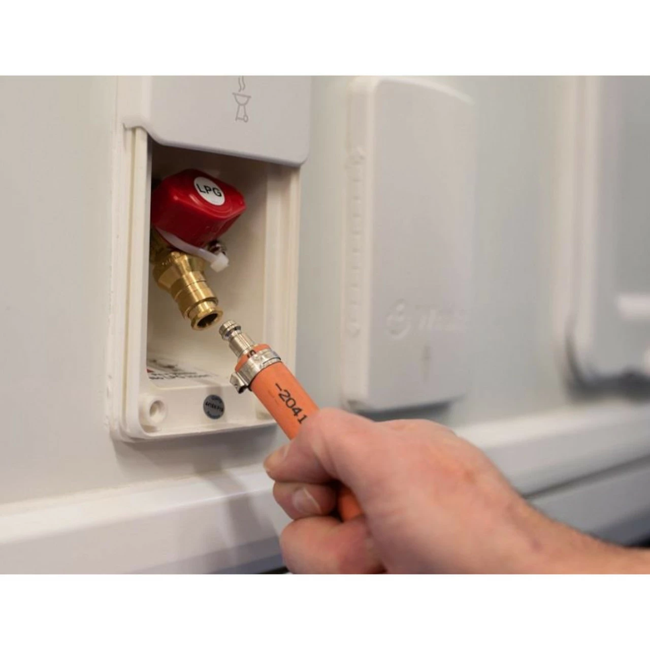 - External gas hook up Gemini style connection to motorhome or caravan Â