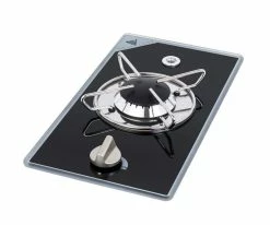 One single burner providing cooking space and versatility with the cooker surface set out long ways catering for a narrower kitchen layout, suitable for campervans, and marine vessels.